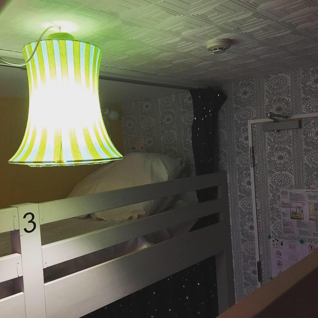 女性専用ドミトリー泊で2段ベッドの上に。4人部屋でおそらく満員だったのだけれど、ほかの人とは交流なし。部屋もベッドも広く、寝るマットレススペース以外にも座るスペースがあり鏡などがあるのがとても良かった。マットレスもかなり快適だったなぁ。