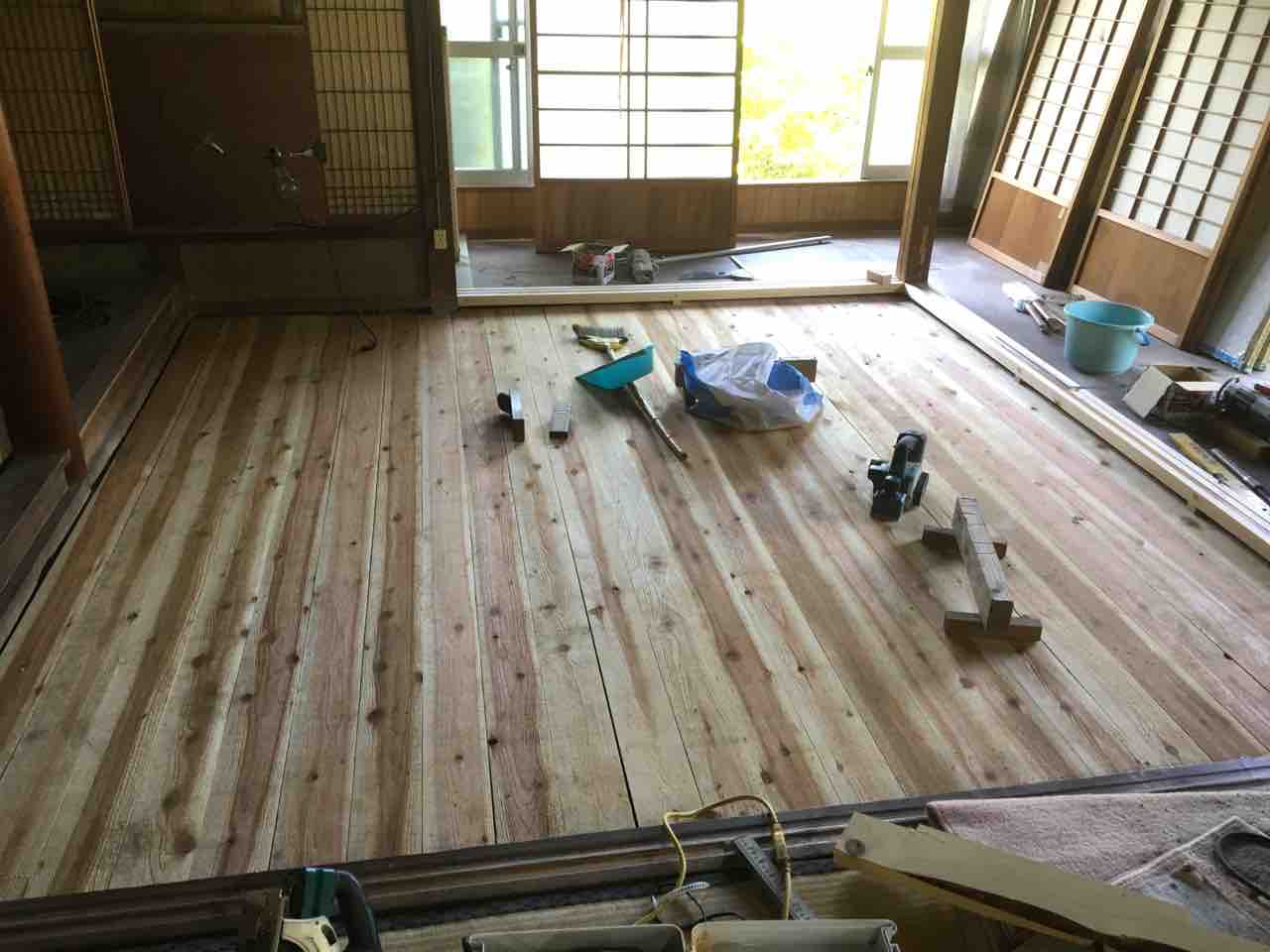 そして、白蟻被害のひどい部屋の床張替え。