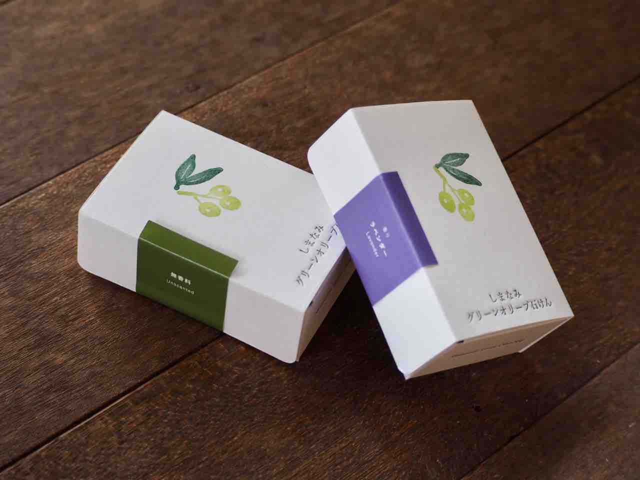 昨年から扱っているしまなみグリーンオリーブ石けんは、今年はラベンダーの香り付きも登場!
