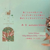 まだまだ暑さは続きますが、季節のブレンドは「なつ」」から「あき」へ。季節のブレンドは四季でリリースしていますが、「あき」が最もスムース&マイルドな口当たりをお楽しみいただけます。秋の味覚である栗や焼き芋のほっこり感、ビター感をイメージしています。ブレンド ...